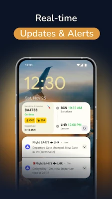 Keep your flight updates at your fingertips with real-time widgets, notifications, and Wear OS support. Never miss a delay, gate change, or arrival alert—whether on your home screen, lock screen, or smartwatch.