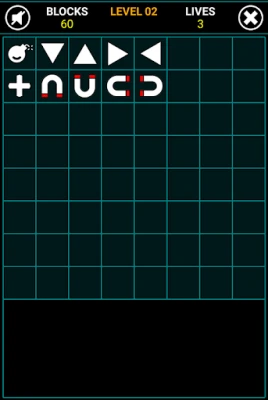 Your goal is to dock all bricks of each level until none remains. You have 3 lives per level, and you loose a life of you come up to a dead end.