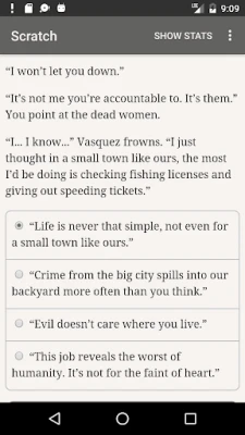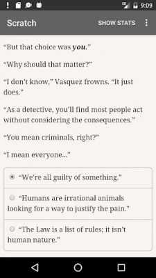 "Scratch" is a 165,000 word interactive murder mystery by Cloud Buchholz, where your choices control the story. It's entirely text-based—without graphics or sound effects—and fueled by the vast, unstoppable power of your imagination.