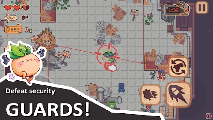 * Take on whoever the bank throws at you in intense shootouts, from security guards to elite veggie swat teams!