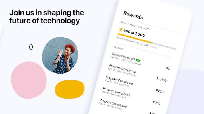 • Earn points and rewards - Get rewarded for participating in programs like surveys, tasks and research.